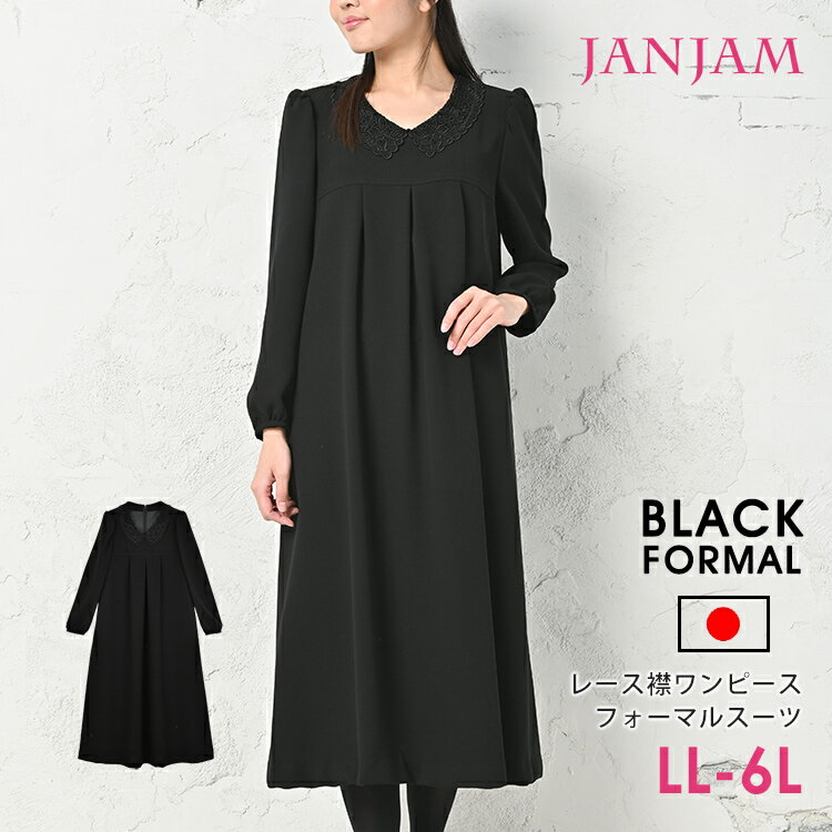 送料無料 日本製 大きいサイズ ブラック フォーマル ワンピース ロング丈 襟元 レース Aライン 黒ワンピース おしゃれ セレモニー 喪の通販はau Pay マーケット Janjamcollection